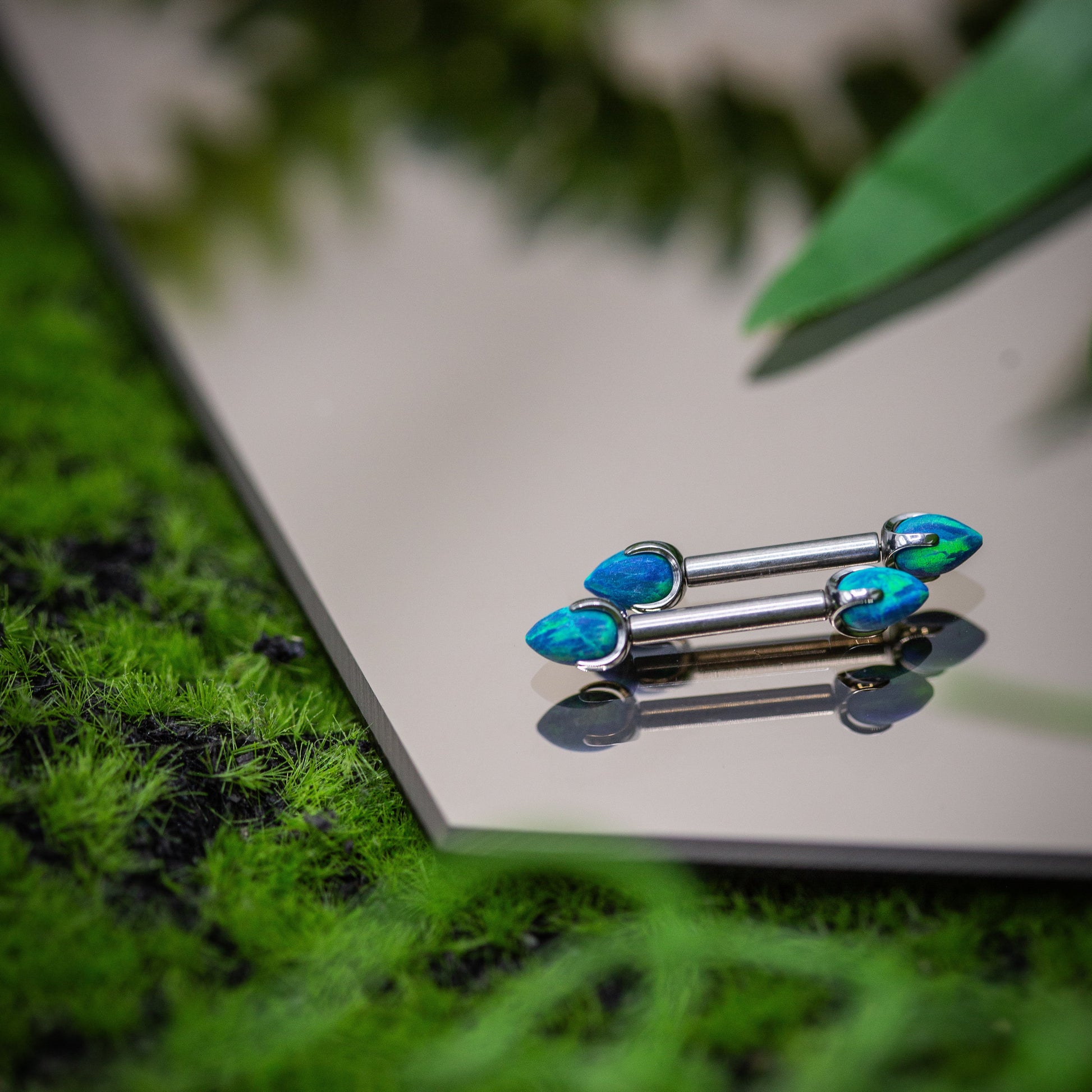 Titanium Nipple Barbell Set w/ Sandblasted Blue-Green Opal Claw-set Bullet