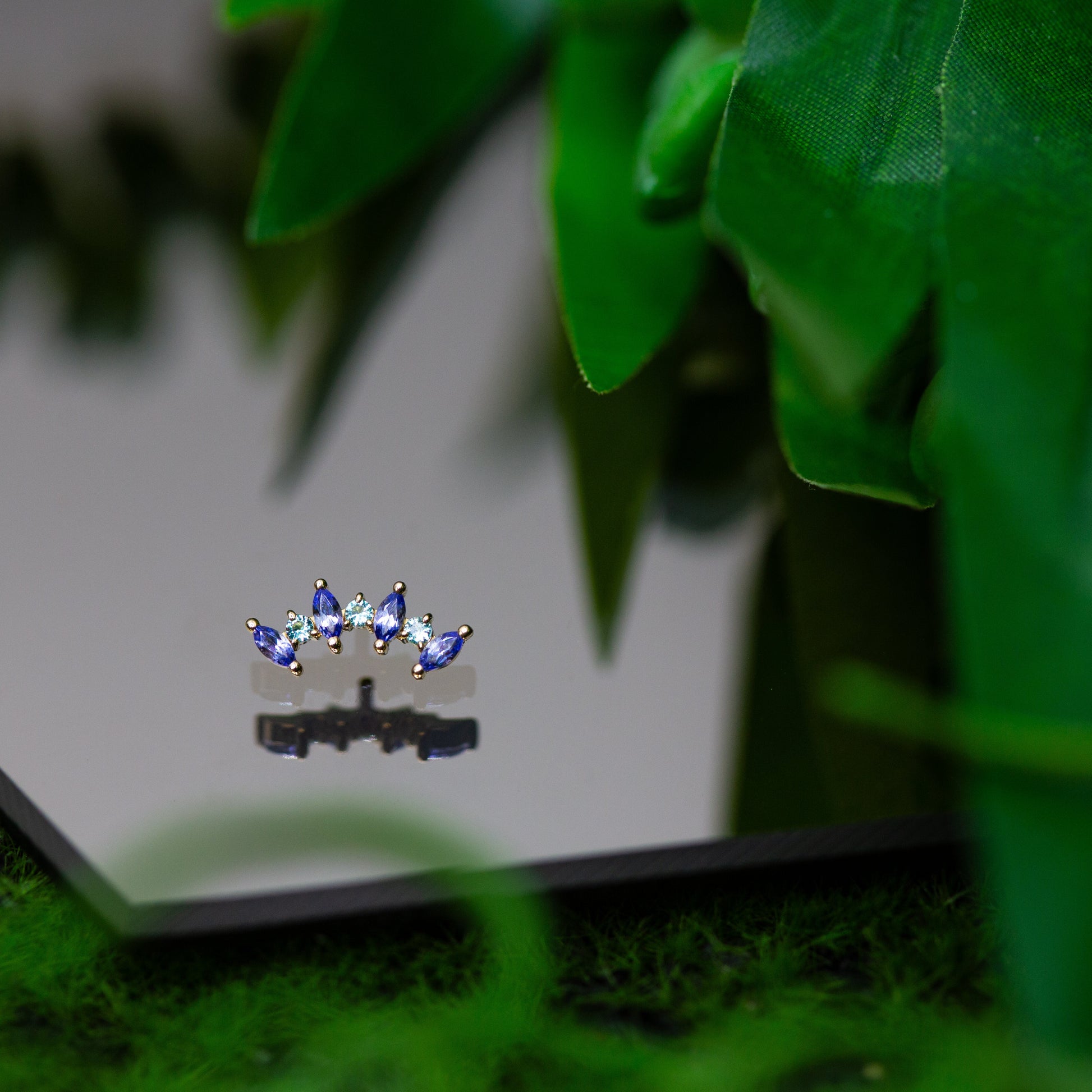 BVLA's new design perfect for helix and lobe piercings! This piece features 4 Marquise AA Tanzanite & 3 round Mint Beryl stones.