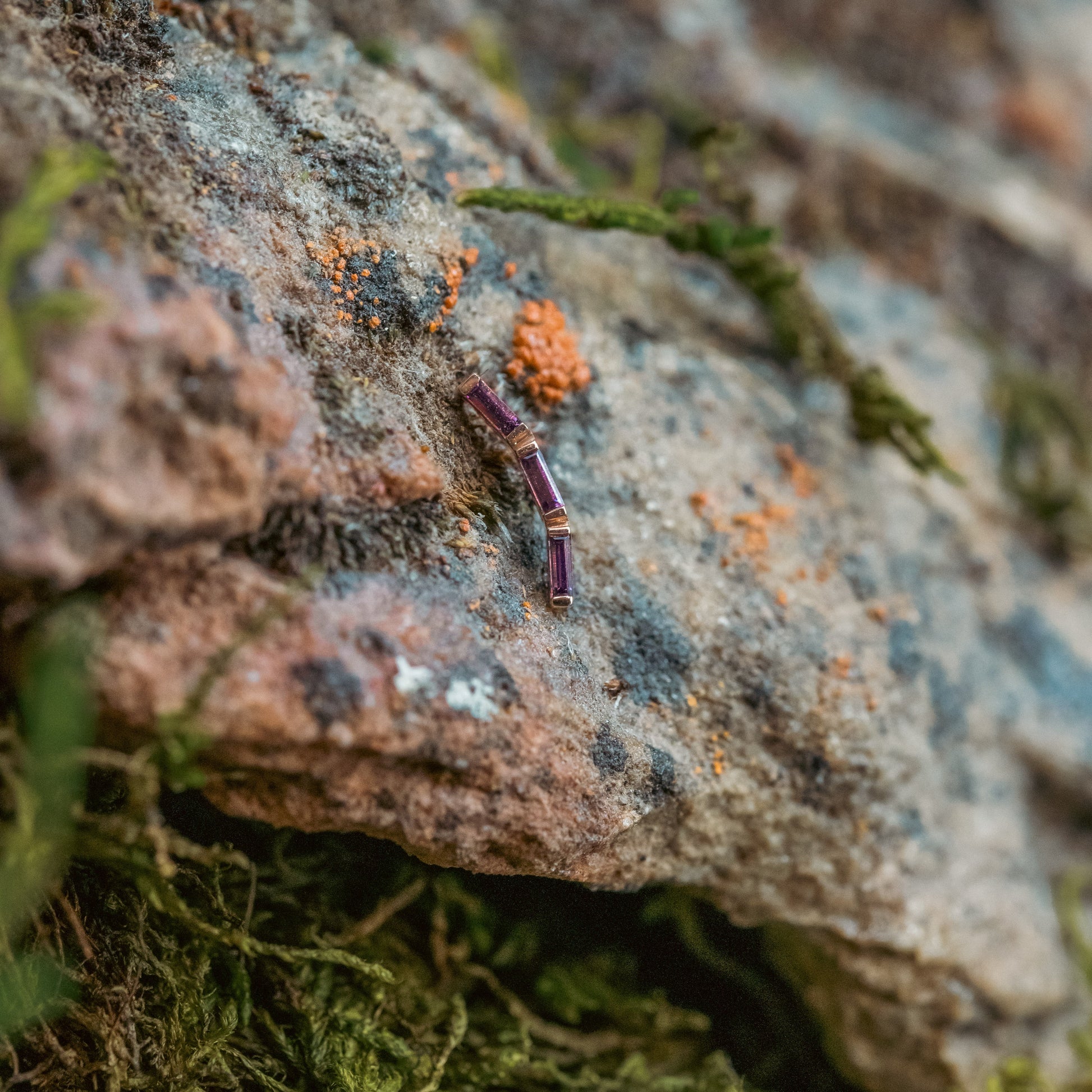 BVLA's new design perfect for helix and lobe piercings! This piece features 3 Genuine baguette cut Rhodolite.