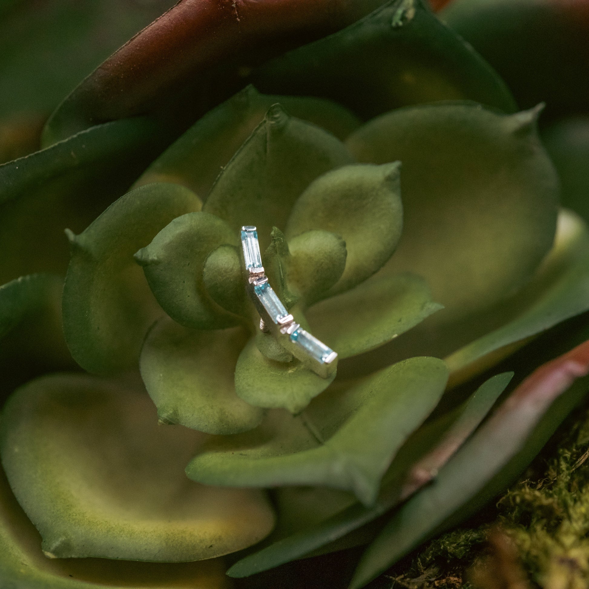 BVLA's new design perfect for helix and lobe piercings! This piece features 3 Genuine baguette cut Swiss Blue Topaz.