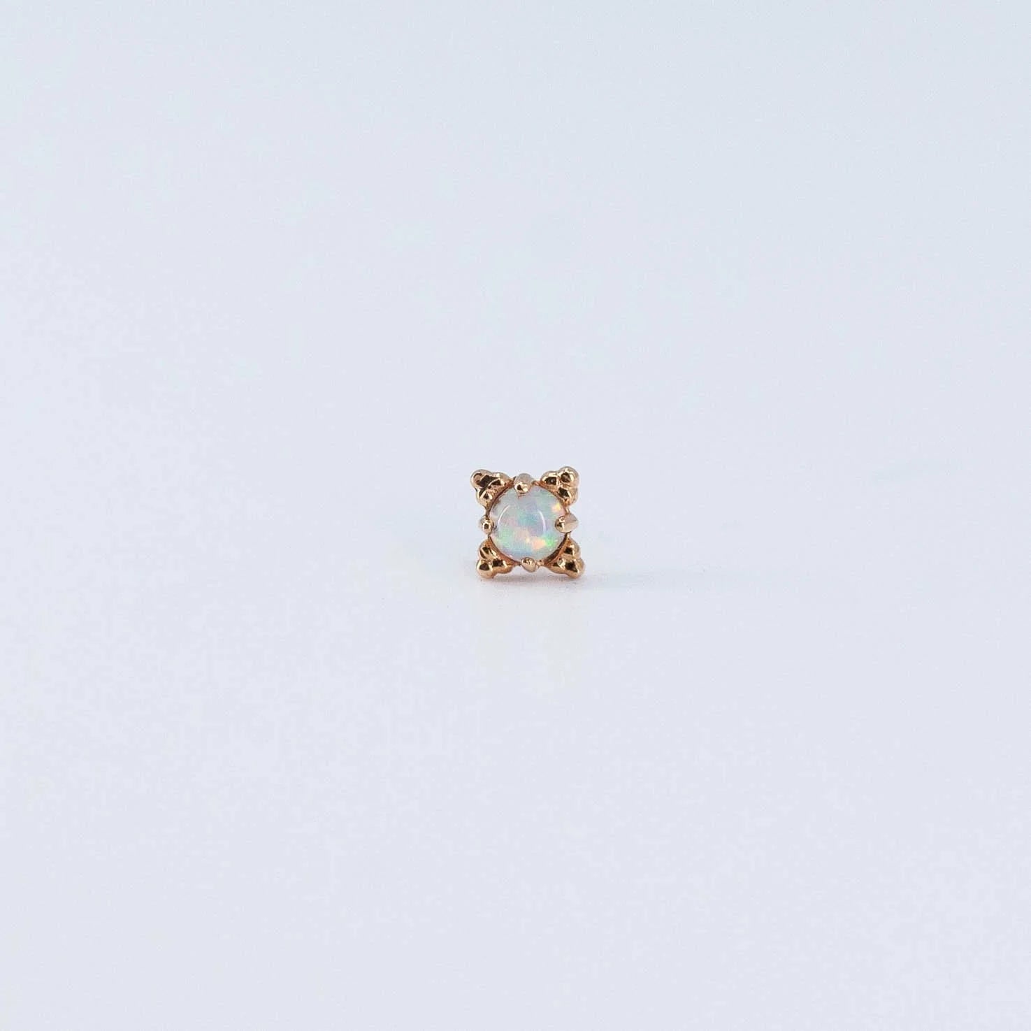 This piece features a White Opal set in solid Gold with beaded accents. Perfect for a variety of ear & facial piercings!