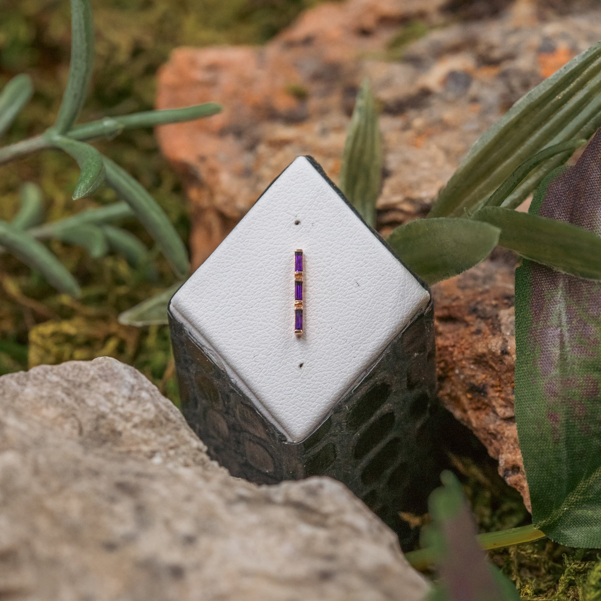 BVLA's new design perfect for helix and lobe piercings! This piece features genuine AA Amethyst. For the perfect balance of color and class.