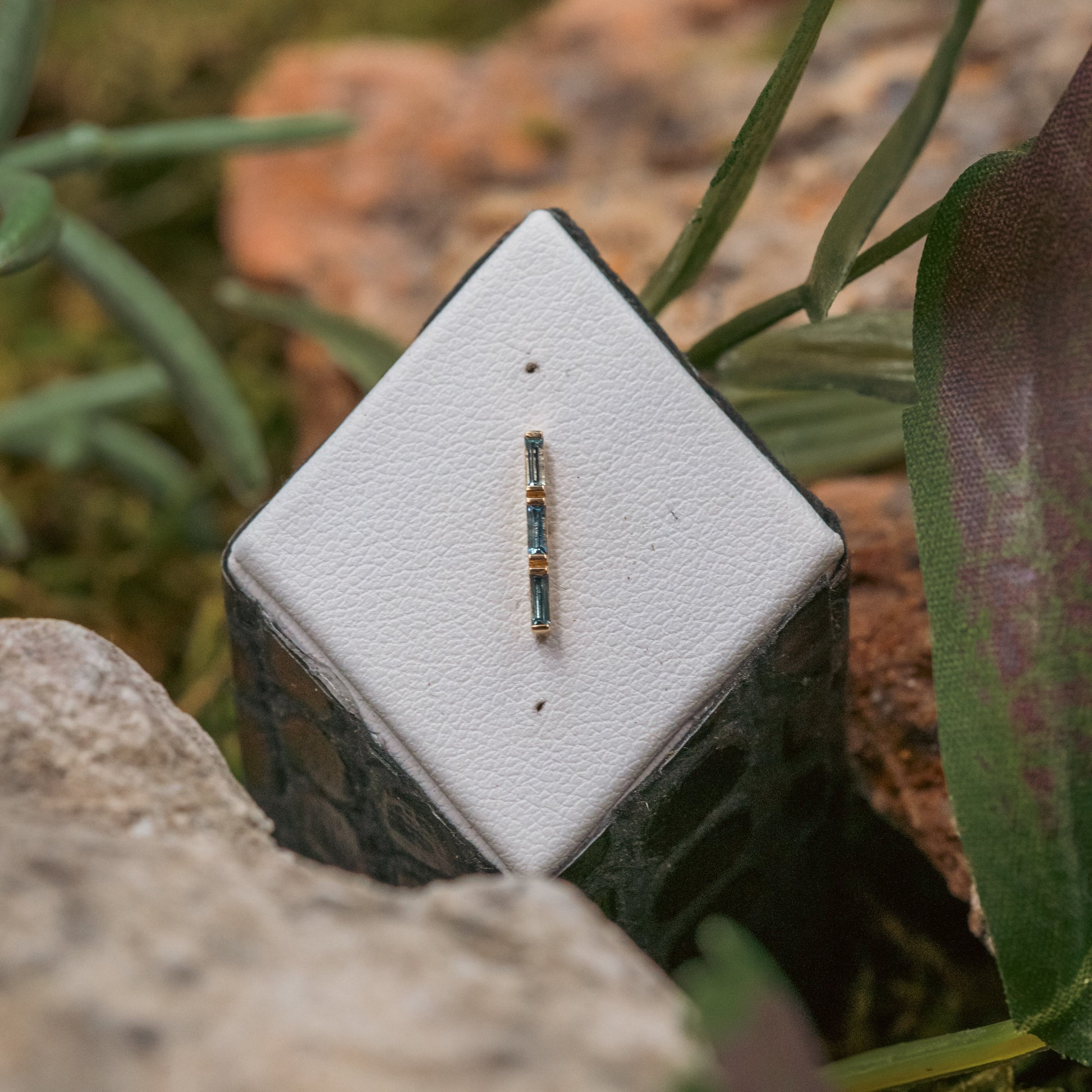 BVLA's new design perfect for helix and lobe piercings! This piece features genuine AA London Blue Topaz & Aquamarine. For the perfect balance of color and class.