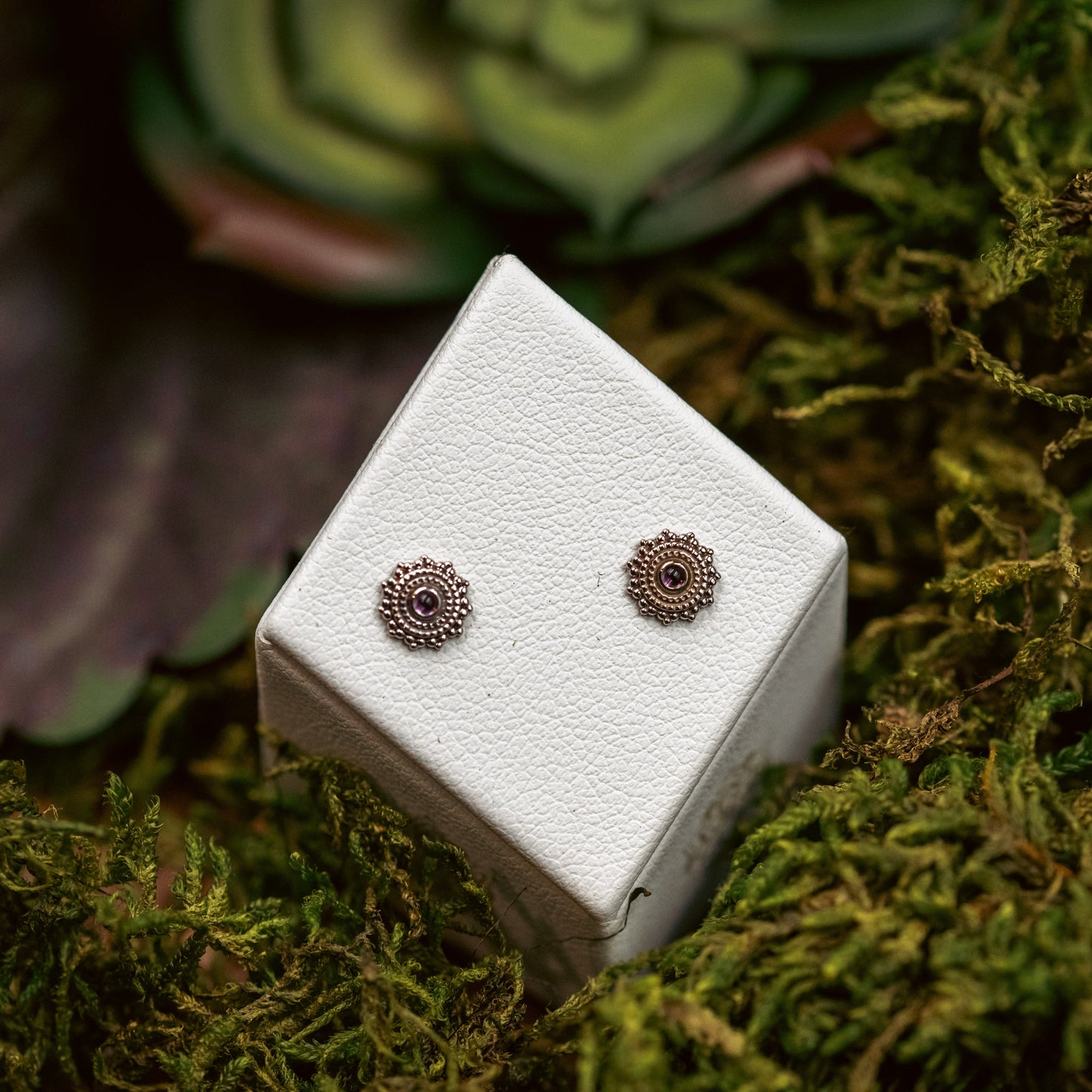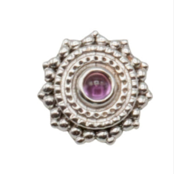 BVLA's most popular 1.5mm bezel set genuine stone encircled by rows of elegant beaded texture. A master piece of beautiful delicate ornate detailing and accented by unique stones for a truly breathtaking design sure to compliment any jewelry collection. At a 6mm sizing this design is perfect for any piercing your heart desires, we recommend: nostrils, helix, earlobes, philtrum, or your conch!