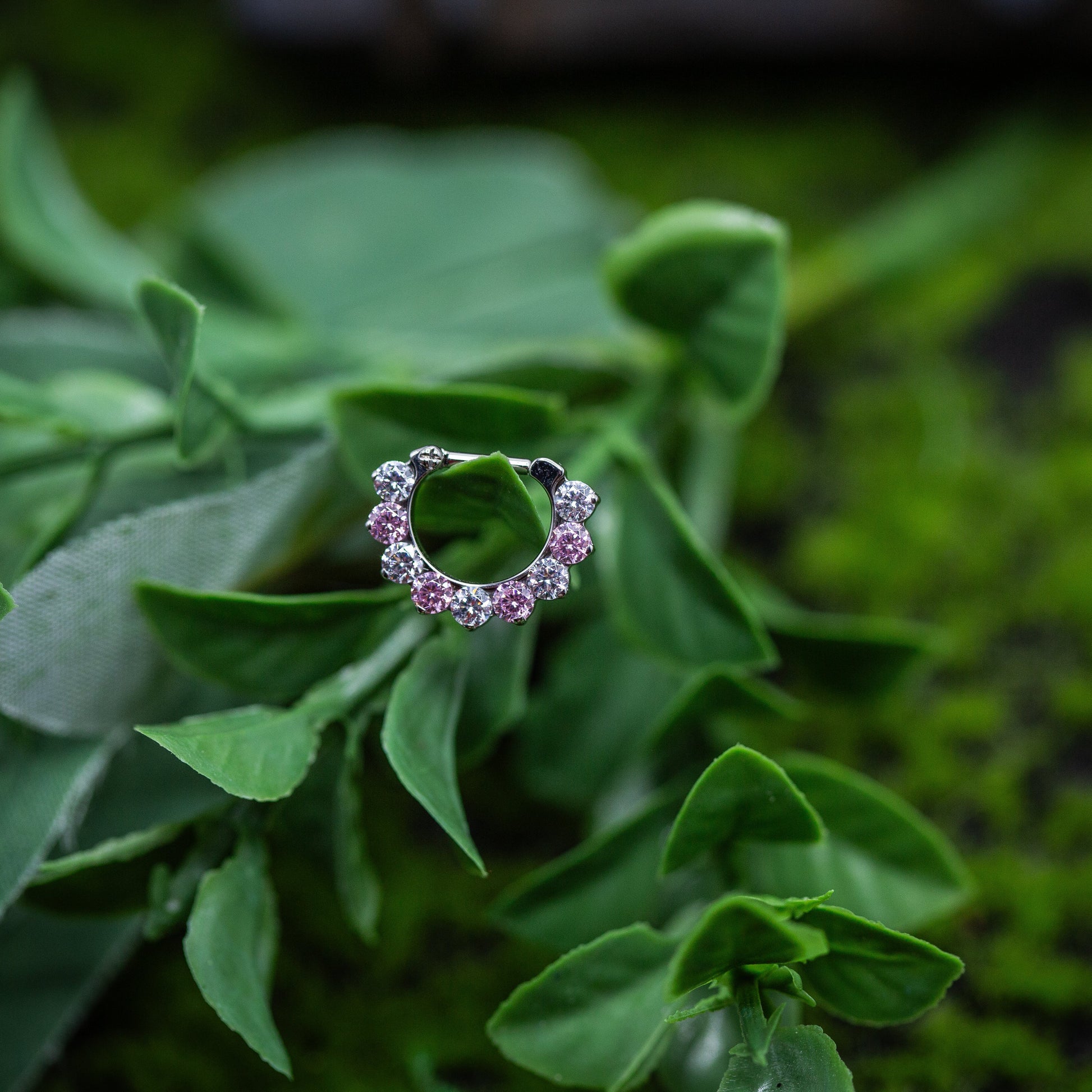 This piece features multiple assorted CZs set in implant grade Titanium. Perfect for a Septum or Daith piercing!